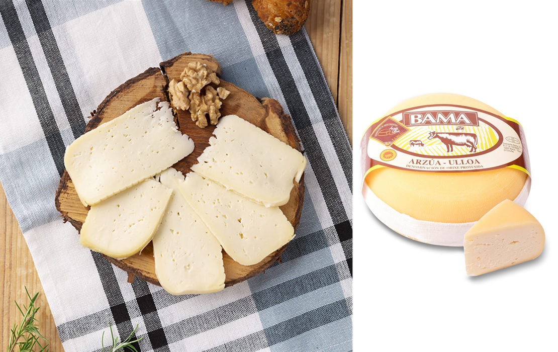 Este queso en forma lenticular se basa en la pasteurización de la mejor leche de vaca y un mínimo de seis días de maduración. Viene con una corteza fina, elástica, brillante y suave y todos ellos están envueltos en la distintiva banda de algodón blanco. En su interior, una pasta uniforme, sin grietas, entre blanco marfil y amarillo pálido, muestra unos ojos redondeados distribuidos irregularmente. Por último, un aroma que recuerda el yogur y la mantequilla, y el sabor fundamental de la leche, ligeramente salado y de acidez media-baja, nos permite identificar un exquisito Queso Arzúa-Ulloa de BAMA